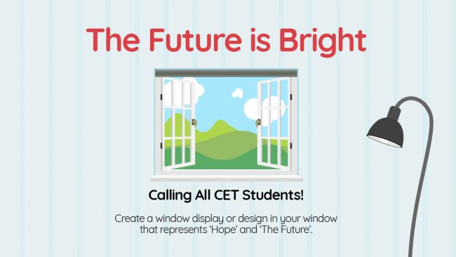 We are inviting all Cumbria Education Trust students to create a window display or a design in your window that represents ‘Hope’ and ‘The Future’.
