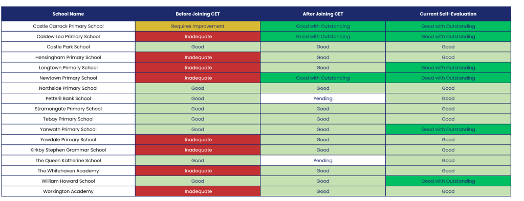 Each school within the Trust has improved in many ways – from refurbishments and financial stability to academic success and award recognition.